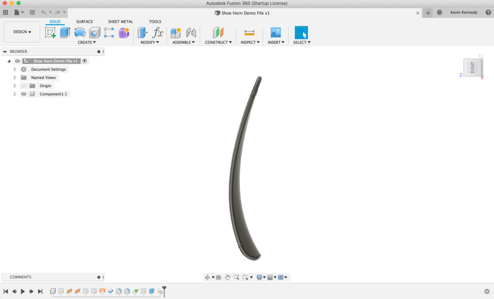This 3D Printable Shoe Horn so that a person can slide their heel easily along its basin to the inner sole of their shoe. A shoehorn or shoe horn is a tool with a short handle that flares into a longer spoon-like head meant to be held against the inside back of a snug-fitting shoe.